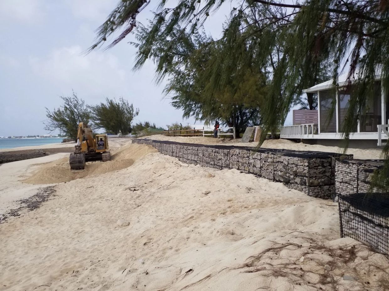 Shown here are gabion retaining walls protecting oceanfront homes